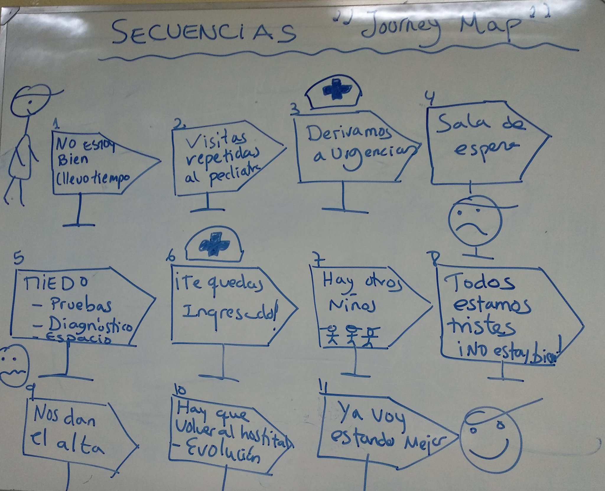 Hoy hemos evidenciado la experiencia del usuario pediátrico en un conjunto de secuencias que los alumnos han concretado en un Journey Map, una herramienta muy poderosa para rediseñar la experiencia de usuario: